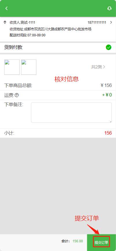核对商品信息—提交订单—支付