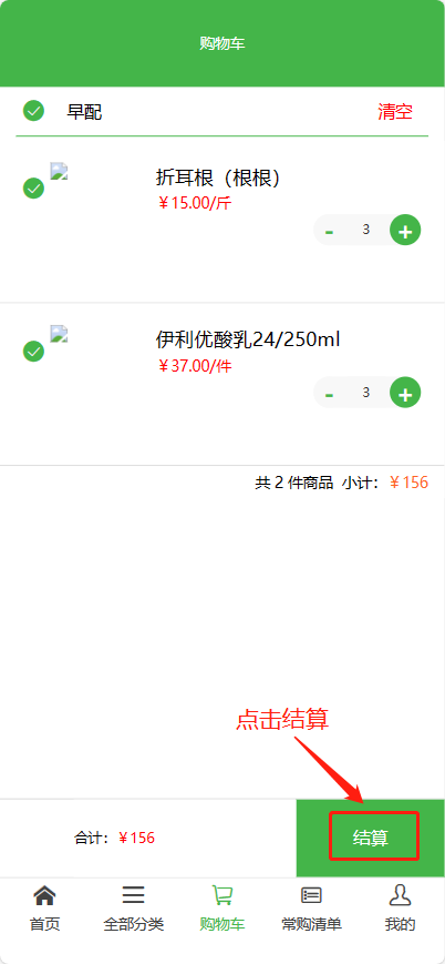 在购物车查看商品—结算